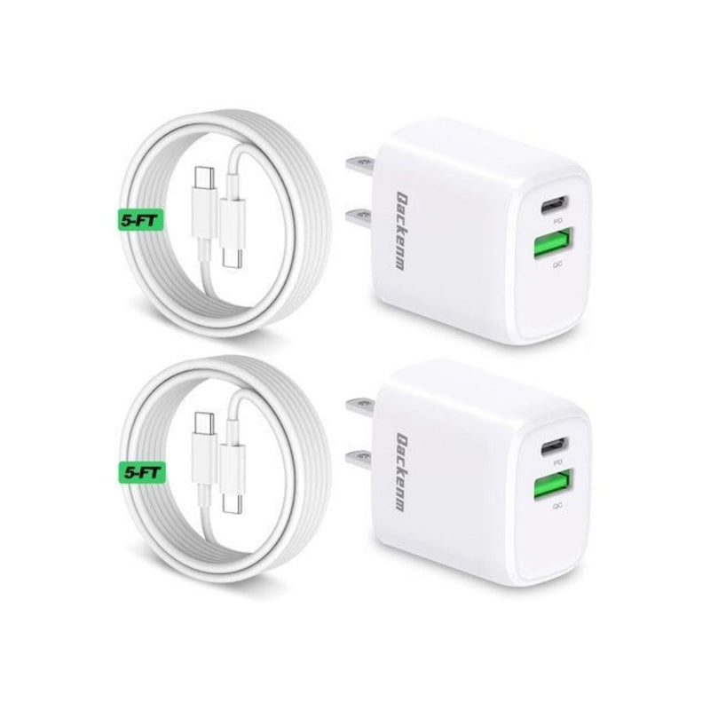 2 20W Dual Port USB C Chargers With Cables