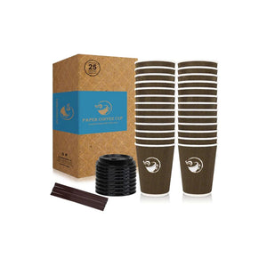 25 Disposable Coffee Cups with Lids and Straws