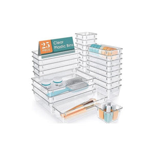 25 PCS Clear Plastic Drawer Organizer Set