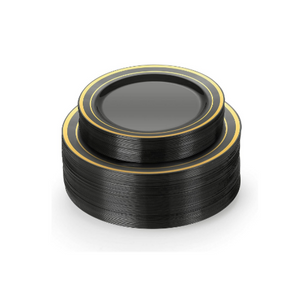 30 Guests Black And Gold Plastic Plates (60 Pcs) Via Amazon