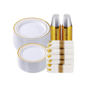 350 Pcs Gold Plastic Dinnerware Set